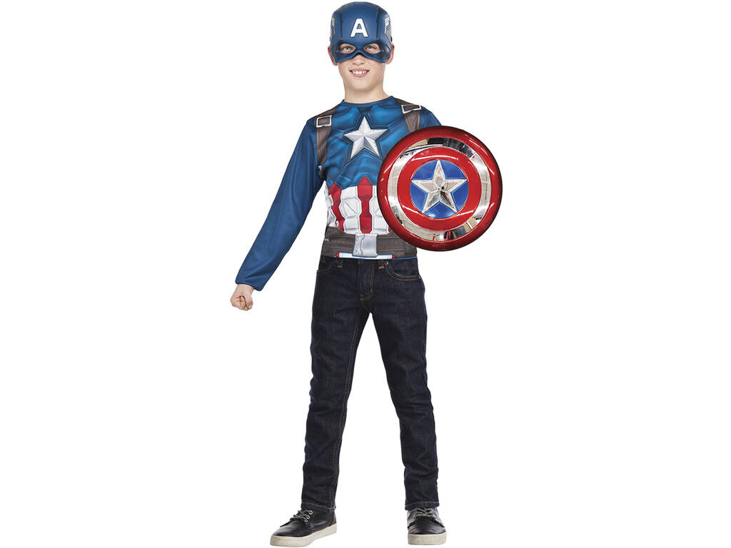 Costume Bambino Capitan America Camicia con Scudo e Maschera Rubies G34112