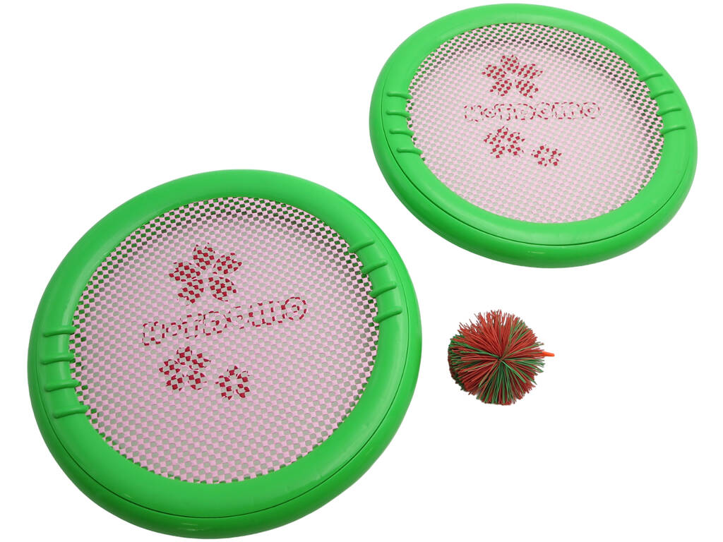 Set di 2 racchette 30 cm con palla di gomma 7 cm verde